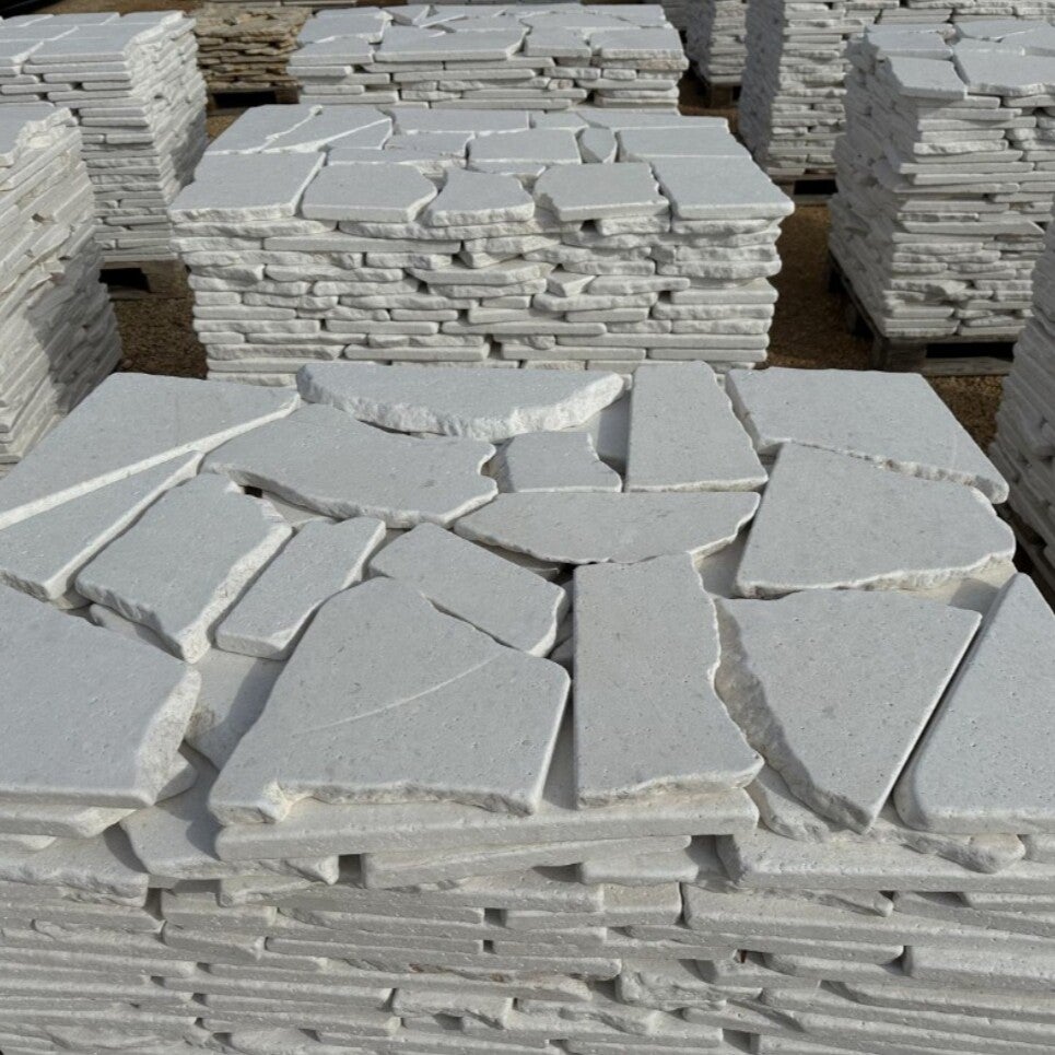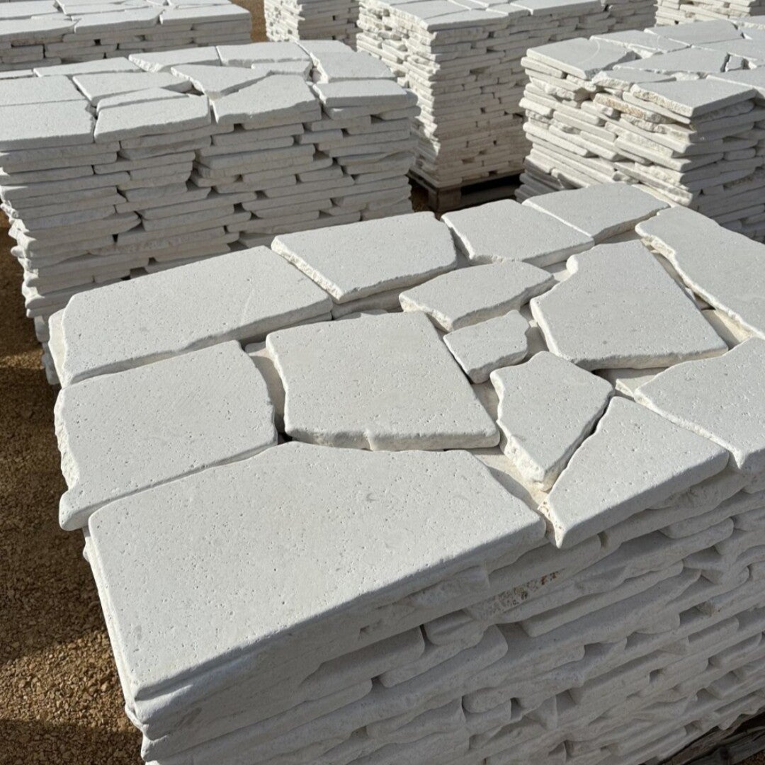 Durch ihre robuste Materialstärke sind diese Platten ideal für Terrassen, Gartenwege, Poolumrandungen, Innenhöfe sowie hochwertige Innenraumgestaltungen geeignet. Die antike Oberflächenbearbeitung sorgt für Rutschfestigkeit und eine angenehme Haptik, während die natürliche Form jeder Platte für ein authentisches, lebendiges Gesamtbild sorgt.
